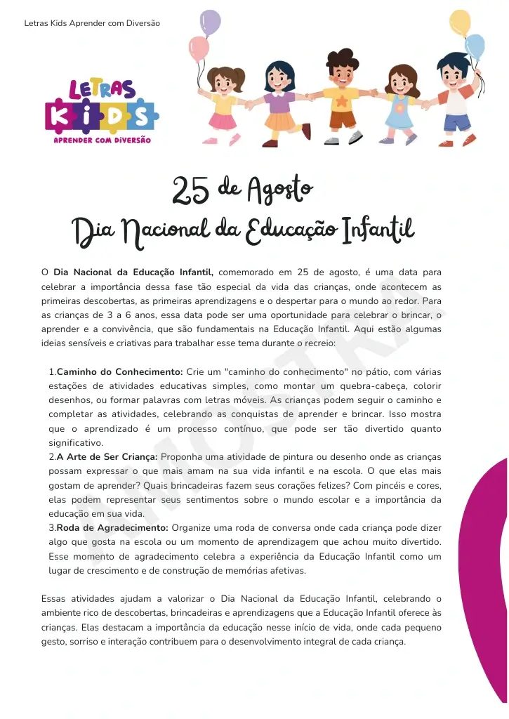 Um material útil para educadores cheio de atividades e dicas para comemorar Datas Especiais com as crianças.