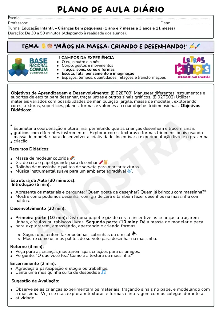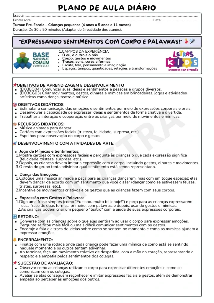 Este material oferece Atividades Criativas que estimulam a imaginação e a expressão artística das crianças, tornando as aulas divertidas e desenvolvendo habilidades essenciais de forma lúdica.